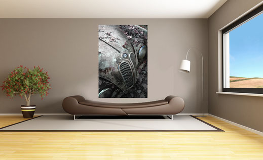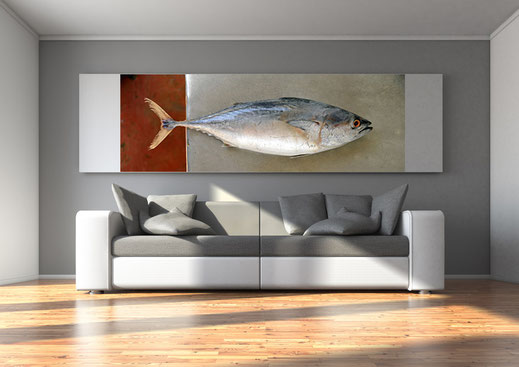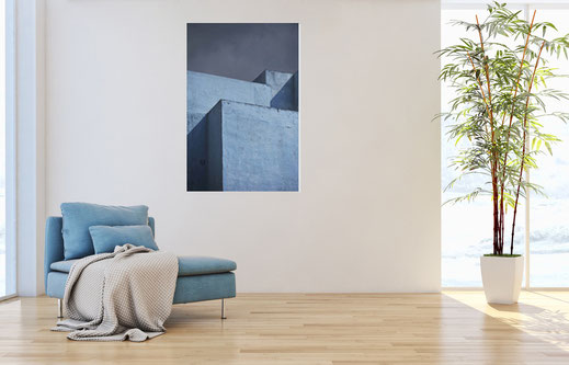 Any of my art photography can be easy displayed as shown here on our test Display page so you can find out wheather size and colours are matching your surroundings. If you send me a Picture of the place you are planning to hang up my peace of art, I will make you a sample Image as shown below.